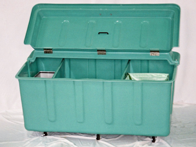 本体底部は一体成型のため、汚水がもれることはありません。ゴム栓付で水洗も出来て衛生的です。 |